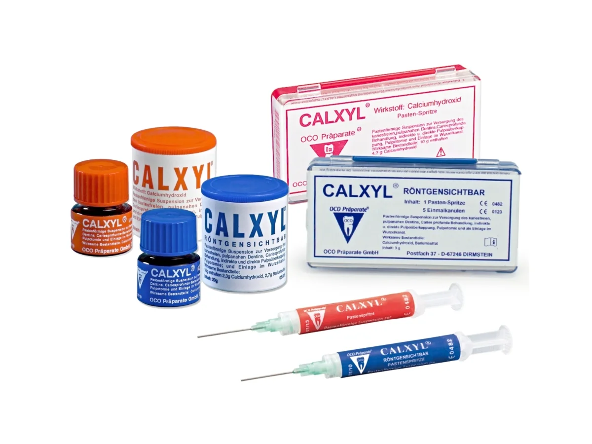 Domov / ... / Trgovina / Ordinacija / Konzervativa / Podlaganje in kritje pulpe / Calxyl Calxyl Pasta s kalcijevim hidroksidom za prekrivanje pulpe in začasno polnitev koreninskih kanalov. pH > 12,6. Brez mešanja, pripravljena za nanos.