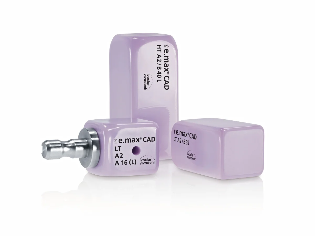 IPS e.max CAD je inovativen litij-disilikatni steklokeramični blok (LS2). Dobavljivi v treh translucencah: LT, HT in MT. Visoka trdnost (360 MPa), vrhunska estetika, učinkovita in ekonomična obdelava, enostavno rezkanje.