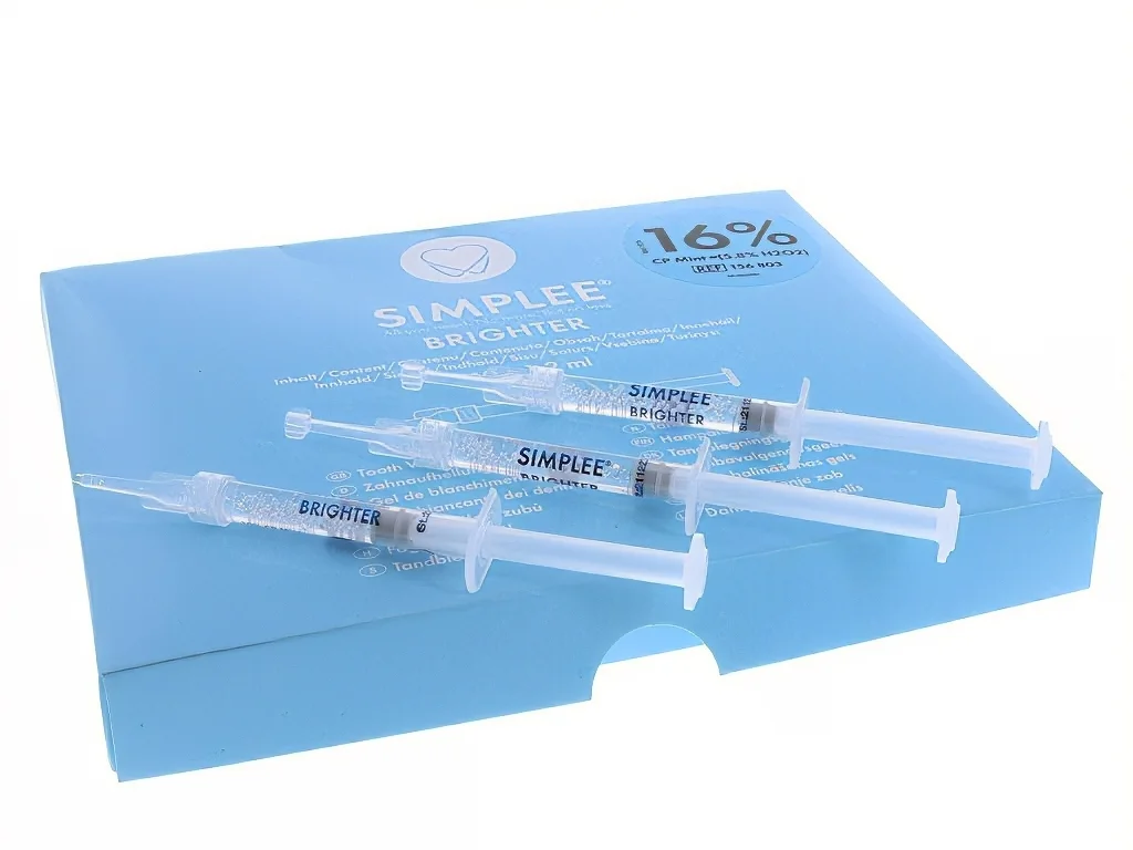 Kozmetični gel za beljenje zob za uporabo z individualnimi ščitniki, za uporabo doma.Gel je prozoren in visoko viskozen, tako da ostane v opornici in ne izteka iz opornice. Na voljo je z 10-odstotnim ali 16-odstotnim karbamidnim peroksidom.