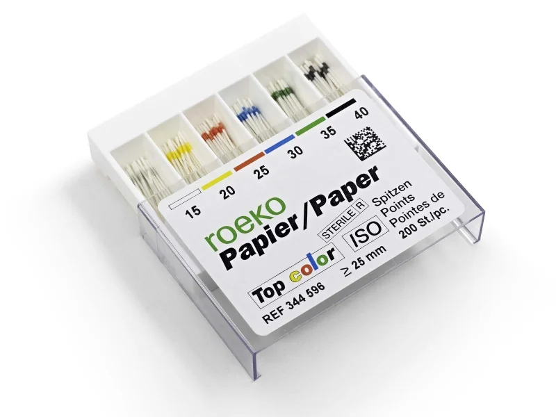 Top Color papirnati poeni Roeko združujejo prednosti belih in barvnih papirnatih poenov. Barvno kodiranje na vrhu papirnatih poenov preprečuje zamenjavo velikosti.